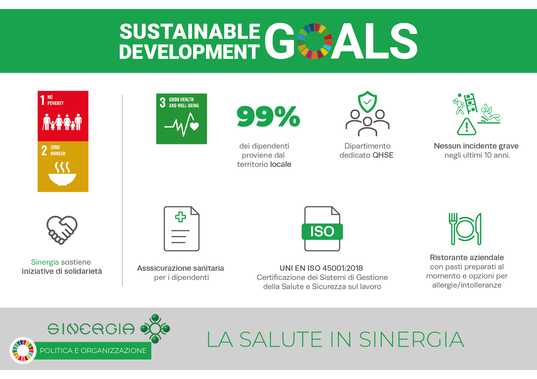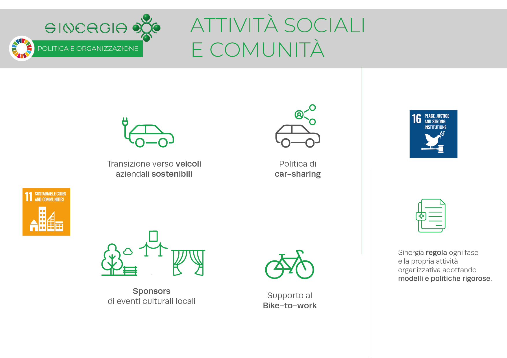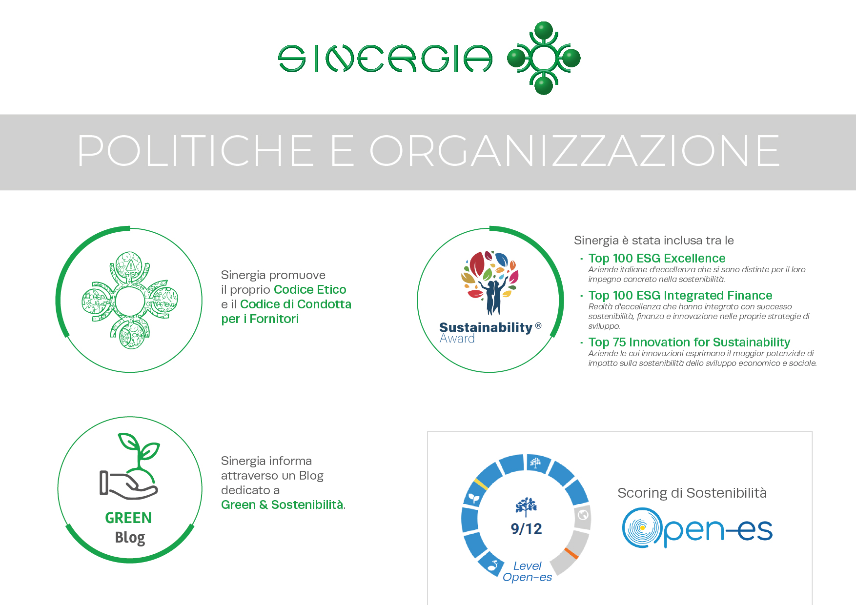 Sinergia mira a mantenere i più elevati standard etici e di conformità e richiede a tutti i propri dipendenti e stakeholder il rispetto dei medesimi principi. Per questo motivo, Sinergia ha adottato un Codice Etico e un Modello di Organizzazione, Gestione e Controllo per la prevenzione dei reati commessi nell’interesse o a vantaggio dell’ente, ai sensi del Decreto Legislativo 231/2001.