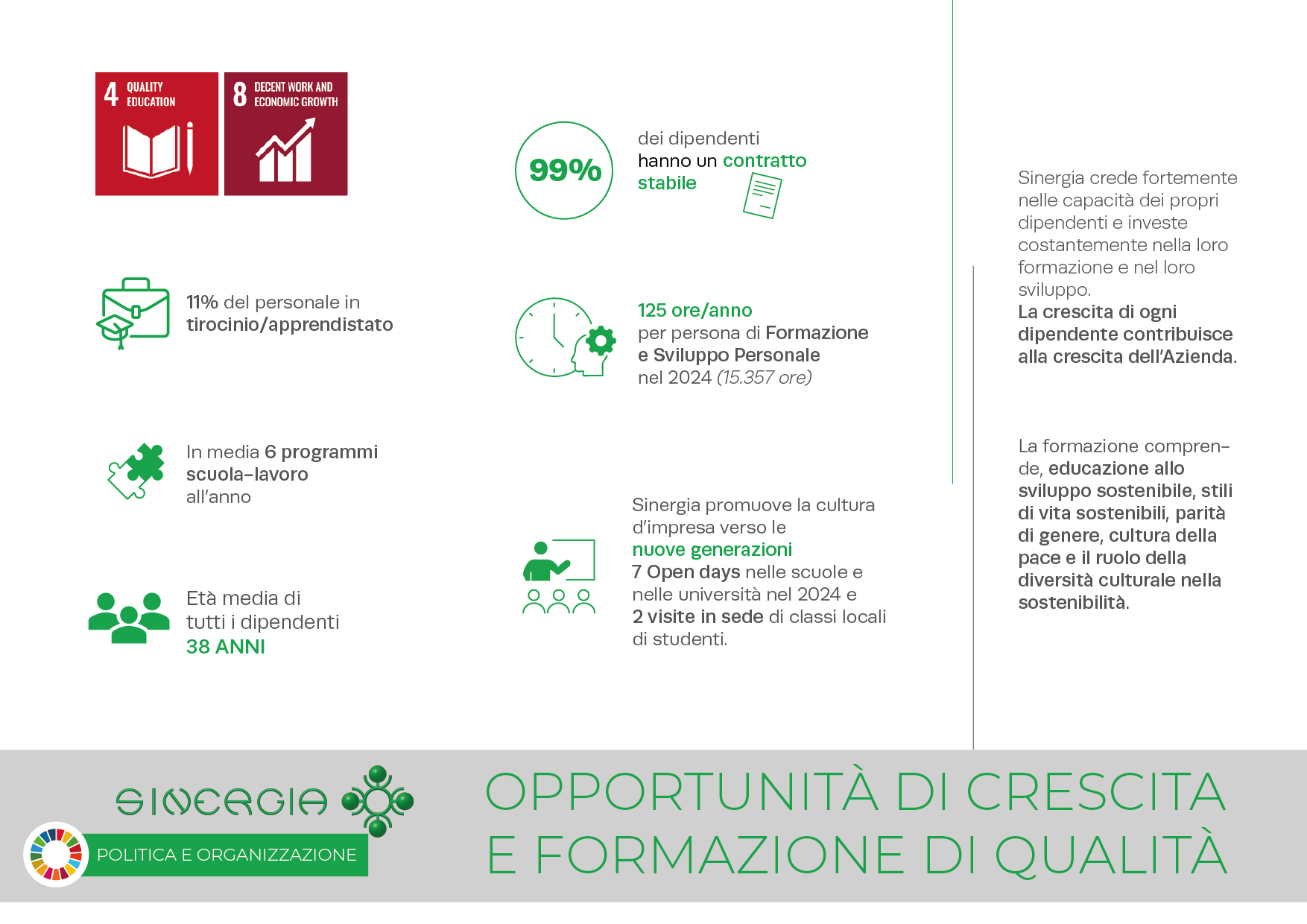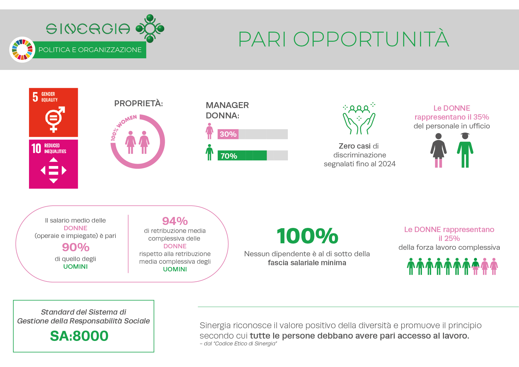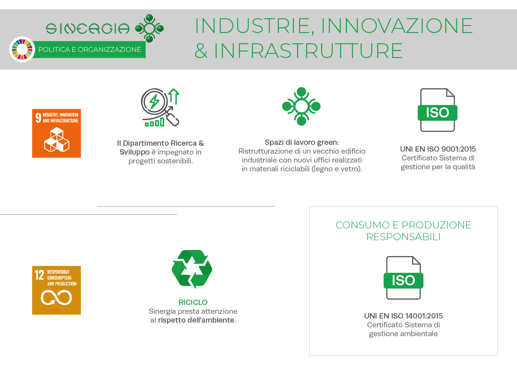Sinergia mira a mantenere i più elevati standard etici e di conformità e richiede a tutti i propri dipendenti e stakeholder il rispetto dei medesimi principi. Per questo motivo, Sinergia ha adottato un Codice Etico e un Modello di Organizzazione, Gestione e Controllo per la prevenzione dei reati commessi nell’interesse o a vantaggio dell’ente, ai sensi del Decreto Legislativo 231/2001.